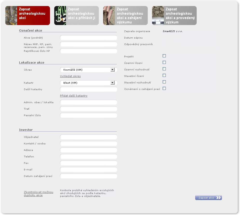 Štruktúra formulárov je prispôsobená na mieru našim zákazníkom. Pre rýchle a presné vyplňovanie sú použité číselníky.